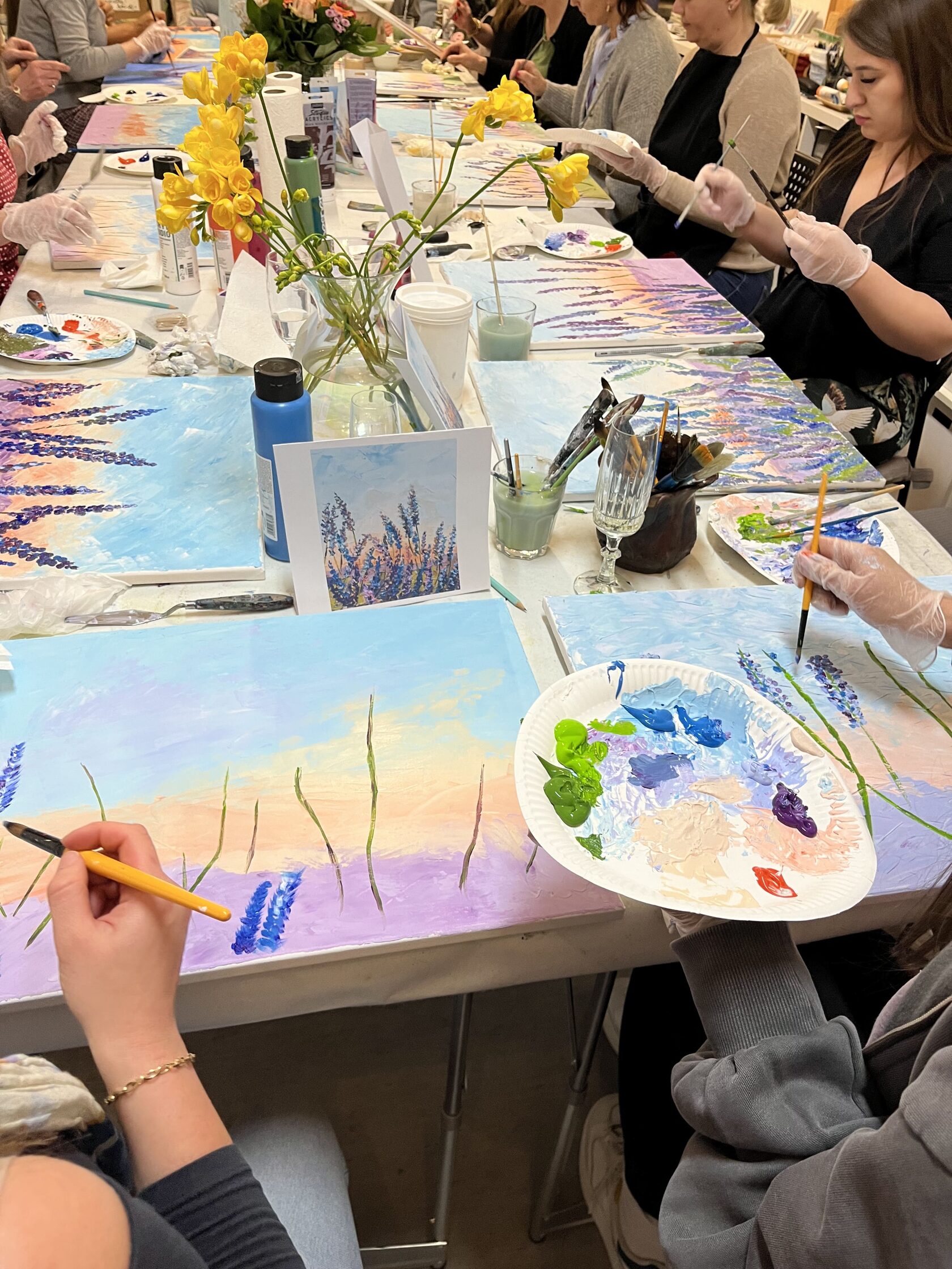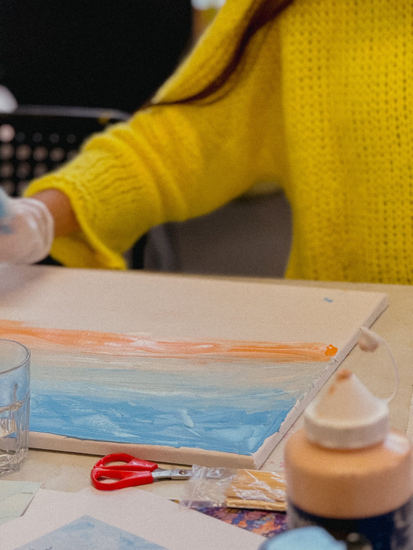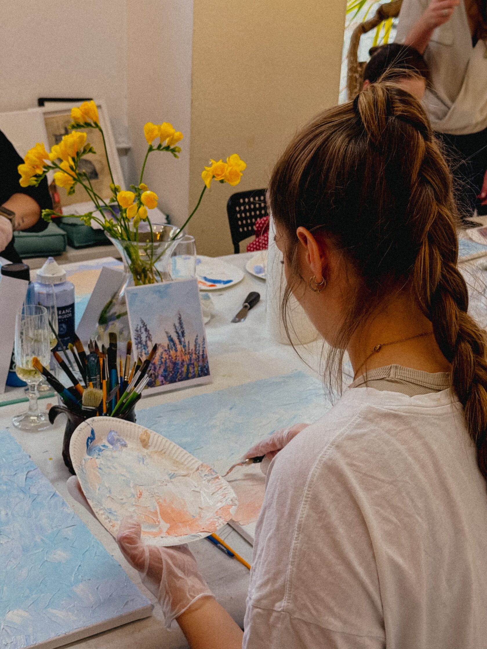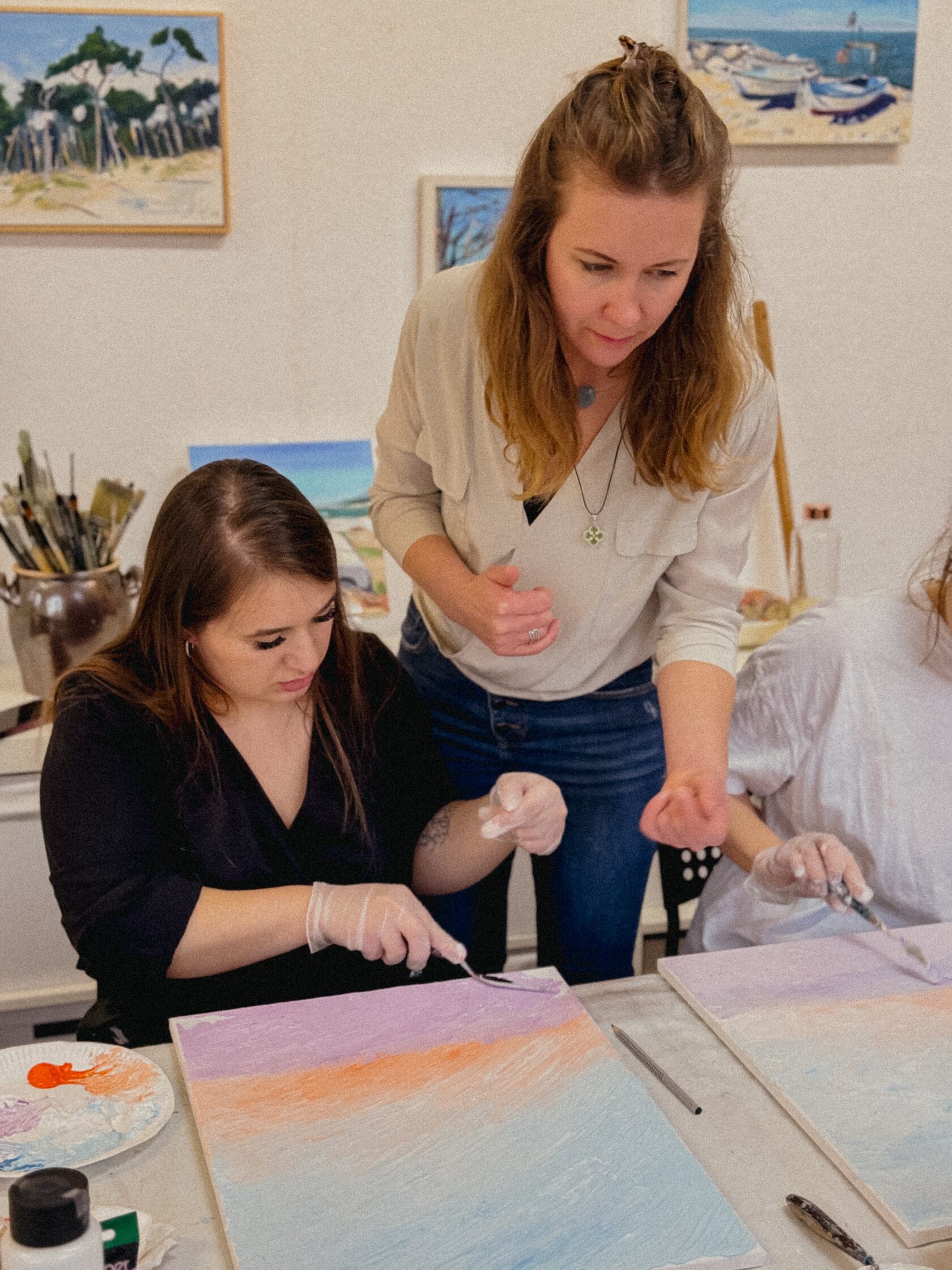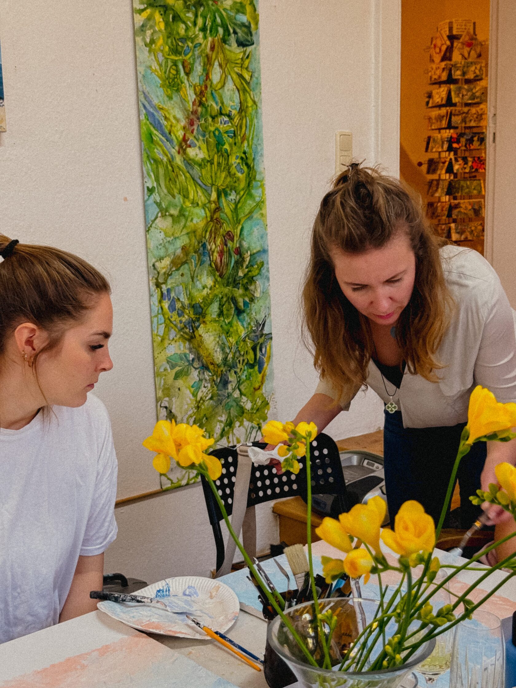 I have attended Ludmilla’s workshops several times with friends, and we always have a great time. The artworks we create are real masterpieces that we proudly hang at home. The atmosphere is creative, relaxed, and fun, and you meet nice, interesting people. Plus, there are delicious snacks and a glass of prosecco – perfect for escaping everyday life.